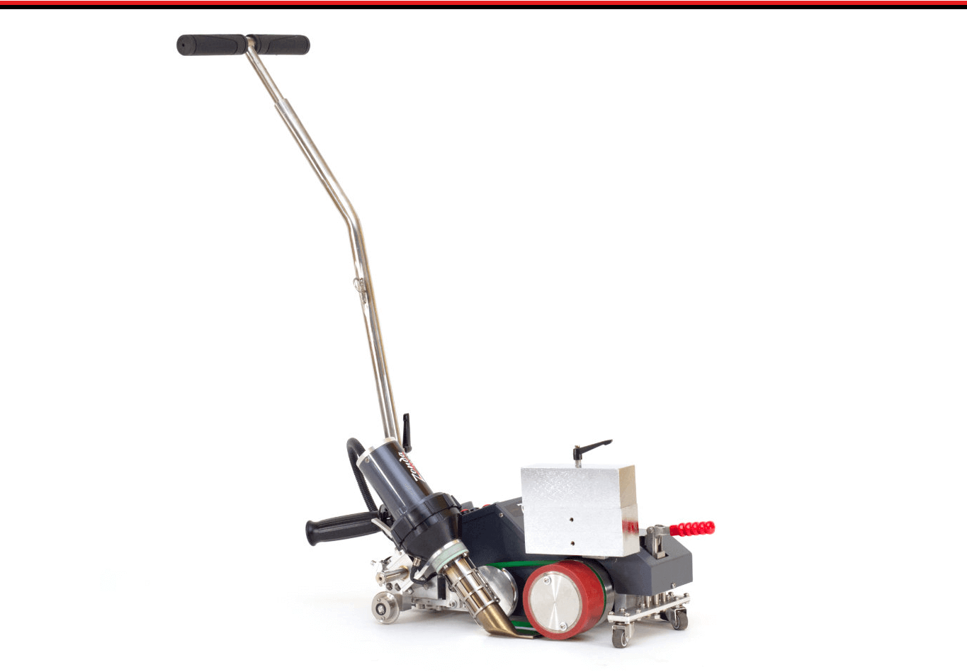 - Drive wheel articulates to keep machine flat on uneven roof surfaces. It is also adjustable to keep the machine welding in a straight line.